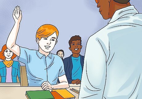 Participate in discussions. Good teachers will engage students in discussions about the subject matter. Make sure you participate in a polite and engaged way. This usually means raising your hand to speak and listening when others are talking. Participating means staying present in class. Never take out your phone or send texts while in class. Keep your head up and eyes alert during class discussions.