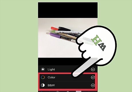 Tap Color or B&W. The "Color" button is for photos with a color filter, while the "B&W" button covers black and white photos.