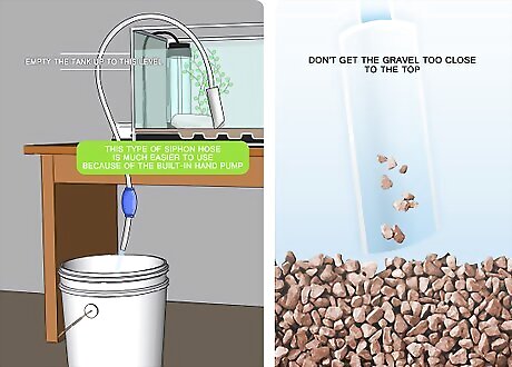 Siphon out 10 to 25 percent of the water. Use the siphon around your gravel to remove the waste and other matter.