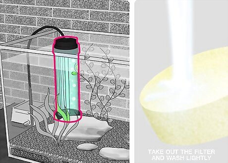 Use an algae scraper to remove any algae from the sides of the tank before you change out the water.