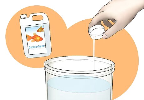 Fill a bucket with tap water that is the same temperature as what is in the tank. Use a bucket that is only for the aquarium so that you don’t get other chemicals and contaminants in the water. If the tap water is not the right temperature, you can leave it out for a few hours at room temperature.