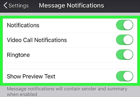 Tap Message Notifications. This displays a list of all possible notification preferences.