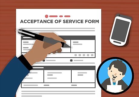 Fill out an Acceptance of Service form and give it to your spouse, if you're married. This legally informs your spouse that you're changing your name. You can work with a lawyer to create a document that notifies your spouse of the change. Your spouse will need to sign the document so you can file it along with your Change of Name form. If you're not married, this does not apply to you. The form only serves to legally tell your spouse that your name is changing.