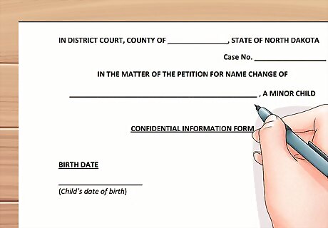 Complete a Confidential Information Form. The other court forms only use the child's initials for purposes of confidentiality. You must provide the child's full name and proposed new name on the Confidential Information Form, which the court will keep separate from the public record. You can download the form here.