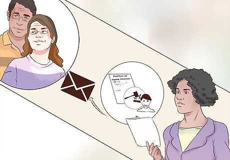 Serve the Notice of Petition for Name Change on any non-custodial parent. If the child has a non-custodial parent, you must mail a completed copy of the Petition to the parent at his or her last-known address. You must mail the Notice within 10 days after the publication of the Notice in the county newspaper.