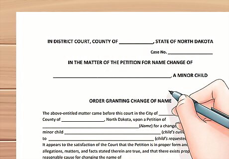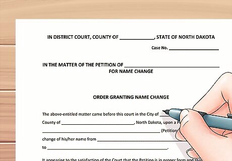 Complete an Order Granting Name Change. This is a "proposed order," which you must fill out and submit with your paperwork. If the judge grants your Petition, he or she will sign and date the Order. You can download the form here. Do not sign and date the form yourself. That space is for the judge to fill.