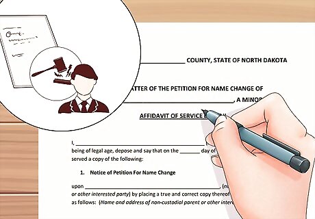 Fill out an Affidavit of Service by Mail and have it notarized. By signing this form, you verify that you mailed a completed copy of the Notice of Petition for Name Change to a non-custodial parent within 10 days of the date on which the Notice appeared in the county newspaper. You can download the form here. Sign the form in the presence of a notary public, who will also sign and stamp the form. If the child does not have a non-custodial parent, disregard this step.