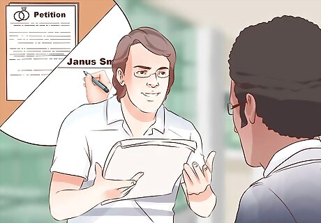 List your new name on your marriage certificate or divorce petition. When you go to the courthouse to get your marriage certificate, the clerk should ask you if you would like to change your name. Make sure your full new name is listed on the marriage certificate. Similarly, you can request that the court change your name back to your prior name in your divorce paperwork. If you have already obtained your marriage certificate and it does not include your name change, you will need to use the court system to change your name.
