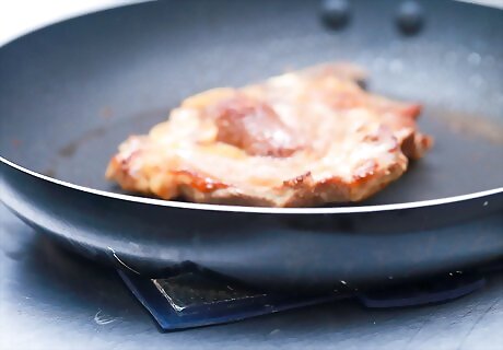 Cook the opposite side of your steaks. The amount of time that you need to cook the opposite side of your steaks will depend on the thickness of your steaks and how thoroughly you want your steaks to be cooked. Keep the heat on medium-high. For a rare 1 ¼-1 ½ inch thick steak, cook for 3-5 more minutes. For a medium-rare 1 ¼-1 ½ inch thick steak, cook for about 5 more minutes. For medium 1 ¼-1 ½ inch thick steak, cook for 5-7 more minutes. For well done 1 ¼-1 ½ inch thick steak, cook for 8-10 more minutes. Subtract a minute or two from the cook time if your steak is thinner than 1 ¼ inches thick. Add a minute or two to the cook time if your steak is more than 1 ½ inches thick.