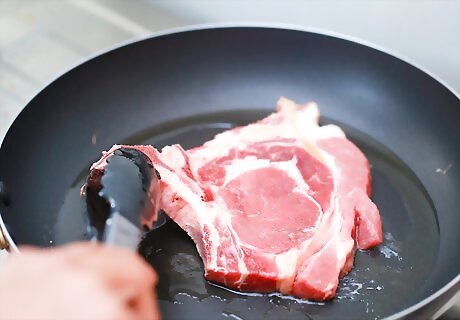 Heat your grill or non-stick pan. If you are using a pan, make sure it is a heavy duty, non-stick pan that is large enough to accommodate all of your steaks. Add med-high heat oil (like canola) to the pan and heat the oil on medium-high heat. Don't use butter. It will brown and then burn. Don't add the steaks until the oil is very hot.