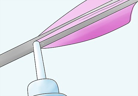 Make sure your nocks are the correct size. There are different types of nocks such as press-fit, pin, over-nocks, and conventional nocks. Press-fit nocks are measured with the diameter of the arrow shaft. They fit in by sliding on and pressing to make it stay. G and F nocks fit in a .166 in diameter. X and A nocks fit in a .204 inch (0.518 cm) diameter. H and H.E. nocks fit a .234 in diameter. S nocks fit in a .244 diameter. GT nocks fit inside a .246 diameter. Pin nocks fit onto an aluminum pin installed at the end of the shaft. This protects the arrow from damage if another arrow hits it. All pin nocks are a standard size. Over-nocks slide onto the shaft. Different companies have different sizes. For example, Easton X10 over-nocks will fit on any X10 arrow. These are commonly used on carbon arrows. Conventional nocks have aluminum cones on the end called swages. The sizes correlate to the diameter of the shaft and you can attach them by using glue to press the nocks in.
