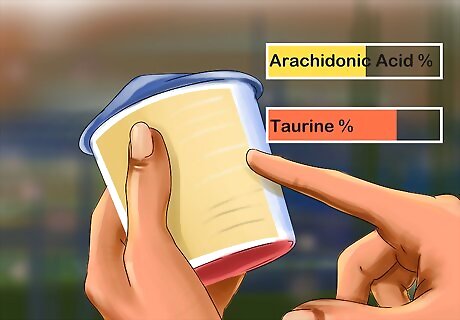 Check the taurine and arachidonic acid content. These ingredients are essential to maintaining your cat’s health. If the cat food contains high quality meat content, it should contain taurine and arachidonic acid. If the cat food does not contain taurine or arachidonic acid, it likely does not contain animal sources of protein. Avoid cat foods that have plant sources of protein instead of animal sources of protein.