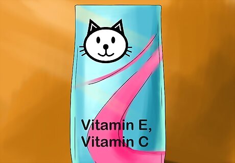 Get low-calorie food for a sedate adult cat. Lazier adult cats should be given cat food that is low in calories to avoid becoming overweight. Look for food that is high in vitamins like calcium, vitamin E, and vitamin C to boost the cat’s immune system. If you have an active adult cat, there is no need to find a low calorie food. Adult cats with a lazy lifestyle are at a high risk of becoming overweight, especially if they are given cat food that is high in calories and fat. Speak to your vet about the right food for your adult cat, especially if you worry it is becoming obese.