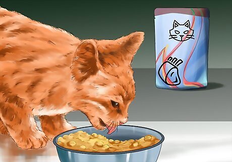 Feed the cat wet food if it tends to get dehydrated. Wet cat food can be more expensive and takes a bit more effort to maintain. It can be a good option if your cat is prone to dehydration and urinary tract issues, and is great for maintaining weight since it provides less calories for the same volume. Wet cat food is perishable so it should be given to your cat at feeding time as soon as you open it. You should then dispose of any remaining wet cat food so it does not go bad.