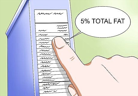 Check the calorie content. You should also note the calories listed for one serving of the packaged food. The label may say “Calories”, and then next to it, “Calories from fat.” This number is how many fat calories are in one serving of the food. Remember that if you eat more than one serving of the food, you are doubling the calorie content. Checking the calorie content will help you get a better sense of how much fat is in the food. A product that is advertised as fat-free may not be calorie free. Reading the label will help you determine the exact calorie content in the food.