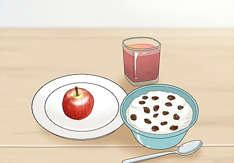 Feed your child fruit as a healthy snack. Your child under ten needs two servings of fruit per day. Fruits offer great options for midday snacks, or can easily be incorporated to breakfasts. A tennis ball-sized apple, orange, or pear counts as a serving of fruit. A cup (240 mL) of 100% fruit juice will also do just fine. Mixing 1/2 cup (120 mL) of raisins or dried cranberries into oatmeal for breakfast counts as a serving of fruit, too.