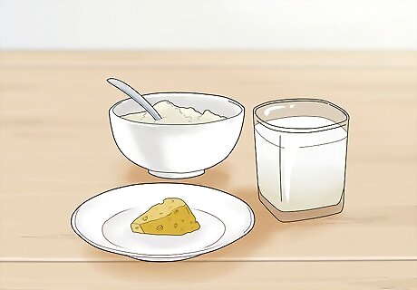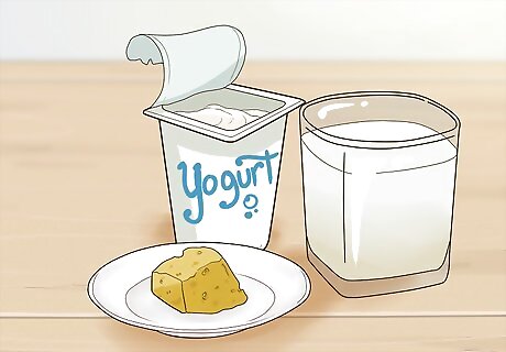 Choose three servings of low-fat dairy. An extra glass of milk is the easiest way to get that extra serving of dairy. A few slices of cheese, or a portion about half the size of a tennis ball, for a snack will add the needed serving. You can also have them eat a container of yogurt as a snack, too. Low or nonfat options are the healthiest sources of dairy.
