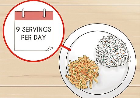 Give your older child nine servings of grain. Your preteen or teen will need an additional three servings of grains per day. Depending on their appetite, you could increase their portions of rice or pasta for lunch and dinner by half to help meet their needs. You could also include more whole wheat snacks during the day. Trying having them eat at least five whole wheat crackers or a mini bagel.