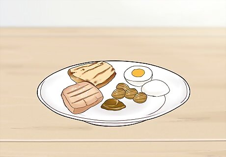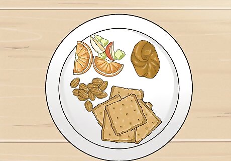 Serve smaller meals at regular times each day. You should serve smaller-sized portions over the course of three meals and a couple snacks instead of trying to pack nutritional requirements into larger portions. Regular meals and snacks distributed throughout the day will help your child maintain their energy level. Healthy portion sizes are also easier on their developing digestive systems. A healthy snack could be a small piece of fruit, 12 unsalted almonds, or a few whole wheat crackers with a ping pong ball-sized portion of peanut butter. If your child gets full easily, breaking up their nutritional requirements into smaller meals and snacks will help you make sure they meet their daily needs.