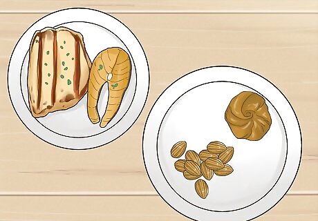 Increase total protein intake to six ounces (170 g). You can increase each portion of protein at lunch and dinner by a half ounce (14 g) to meet an older child's additional requirement. Other healthy portion sizes that will help meet their protein requirement include an extra ping pong ball-sized scoop of peanut butter or hummus. Snacking on unsalted nuts, such as 12 almonds or 24 pistachios, will also help your child get additional protein.