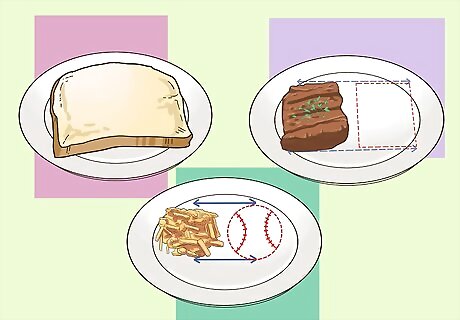 Teach your child to choose healthy portions. Start teaching your child early about how to recognize a healthy portion size and how to serve themselves. During toddler years, present them with different sized spoons or scoops and ask them which is larger or smaller. Get them used to comparing portion sizes to familiar objects, like baseballs or card decks.