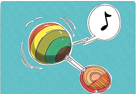 Find toys that encourage your infant to produce sound. Encourage your infant to make sound and music by choosing toys such as rattles, mini-sized maracas, toy drums, xylophones, and musical triangles. These toys will help your child to make and produce sounds, helping them perform motor skills. Consider finding toy wind instruments to have your infant practice motor skills by blowing with their mouth.