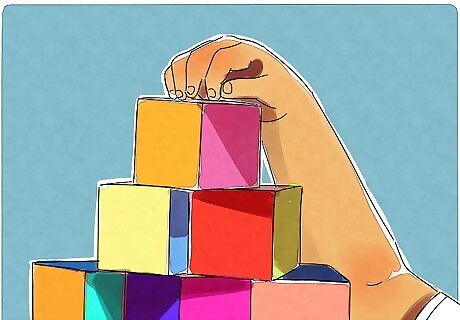 Choose toys that your infant can stack. Try picking out stack-able toys that your infant can use to play and stack with. Blocks, containers, stack up cups, and stack up rings are fun toys for your infant to use, because they are able to use fine motor skills. Try picking out colorful stack-able toys if your infant still has some vision, so they can see the toys more clearly. When picking out blocks, try choosing soft, cloth blocks rather than wooden or plastic blocks. Cloth blocks are easier to handle and will prevent your infant from getting injured when they knock down the blocks.