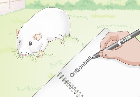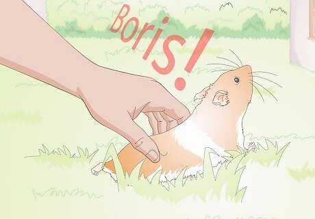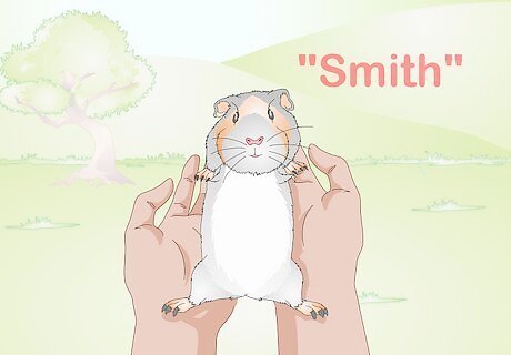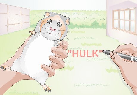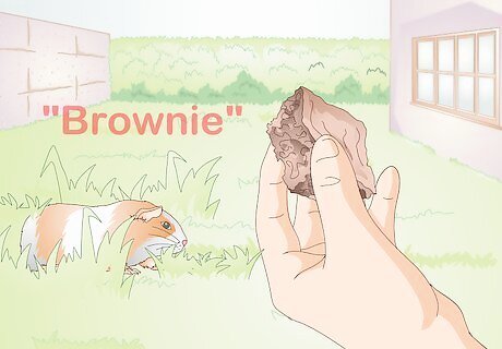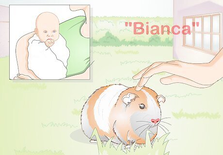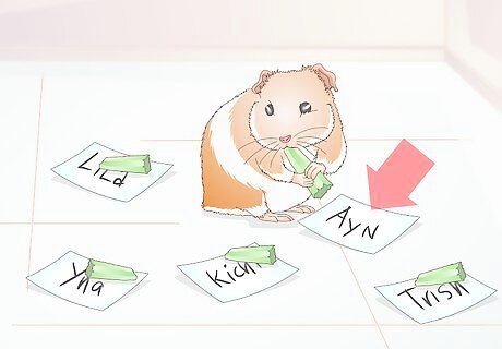 Let your guinea pig “choose”. If you need help picking a name, let your guinea pig join in the process of choosing a name. Write down several of your favorite names on several small pieces of paper. Then scatter the pieces of paper around the room and put a little bit of guinea pig food on the top of each piece of paper. Place your guinea pig in the middle of the room, and pick whichever name is on the paper that your guinea pig eats off of first!
