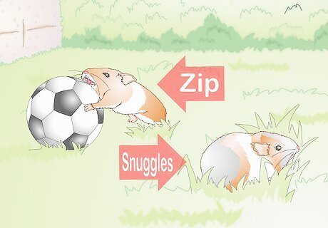 Choose a name that fits its personality. Think about your guinea pig’s attributes and personality. Is it shy or outgoing? Energetic or lazy? Try to think of cute names that fit their attributes and behaviors. If your guinea pig is energetic and hyper, you could name it Zip, Frisky or Dasher. If your guinea pig is especially affectionate, you could call it Snuggles or Sweetie.
