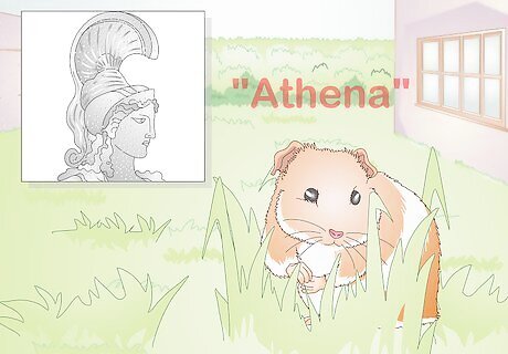 Name your guinea pig after a historical or mythical figure. Think about your favorite figures from history. These often make great pet names because they give your pet a unique tie to history. The associations these names provoke are often humorous in light of your adorable, fluffy pet. You could name your male guinea pig Moses, Hamlet, Napoleon or Dante. You could name your female guinea pig Cleopatra, Athena, or Marilyn.