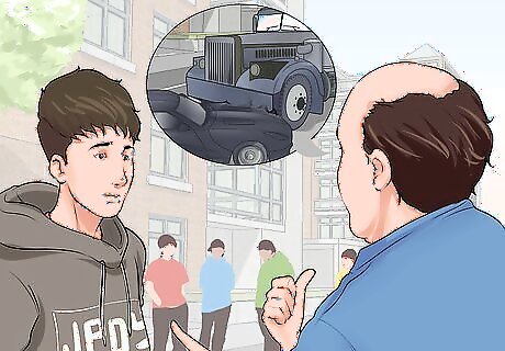 Call the police. Call 911 or make sure that someone at the scene does. When the police arrive, provide an honest assessment of what happened. Avoid admitting responsibility to the police or anyone else at the scene. Avoid saying, “I’m sorry.” Often insurance adjusters will talk to the police officers if there is any question as to fault, so not calling the police only harms you. It may reduce your amount of compensation.