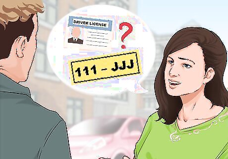 Get the other driver’s information. It is critical that you get the name, driver’s license number, and license plate number for the other driver. You will also need that person’s insurance policy number, though they may not have it with them at the scene of the accident.