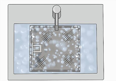 Remove the filter and let it soak if it’s able to go in water. Slide or pop the filter out of the underside of the hood. Inspect your filter to see what kind it is. A metal or sponge filter can be washed with soapy water, while a paper or carbon filter can’t be washed. If you have a metal or sponge filter, let it soak in the hot water for 10 minutes. If you have a carbon filter, replace it every 6 months. A paper filter is disposable and doesn’t need to be cleaned.