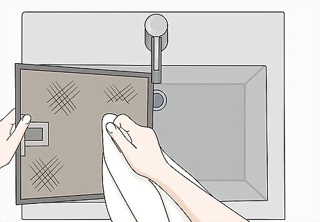 Dry the filter thoroughly using a clean towel. Swipe a clean cloth or towel over the filter to dry it. Dry both sides and all the edges to ensure it’s as dry as possible before it’s put back into place. If you don’t have towels or cloths that you’d like to use on the filter, use paper towels instead.