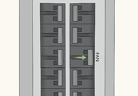 Turn the power to the fan off at the circuit breaker or switch. This is to make sure the fan doesn’t come on as you’re cleaning it, causing you harm. Switch the power to off at the switch in the bathroom, or go to your circuit breaker and turn off the power for that room. Circuit breakers are usually found in the basement or garage, though sometimes they’re on the outside of your house.