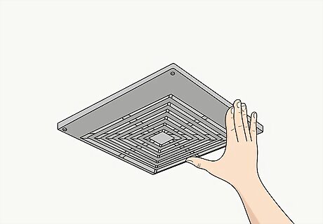 Remove the vent cover using the springs or screw. If your vent cover is spring loaded, place your hands on either side of the vent and simply pull down to remove it. If there’s a screw in the center of the vent, use a screwdriver to remove the screw and release the vent cover. A spring-loaded cover will have clips on the inside that you squeeze to remove the vent cover fully.