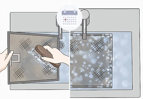 Clean your kitchen extractor fan every month. The grease builds up over time in the fan, so it’s important to clean the extractor once every month or so. Plan to clean it at a certain time each month, like on the first Saturday, so you always know when the last time you cleaned it was. If you don’t use your stovetop very often, you might clean it every other month instead.