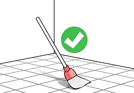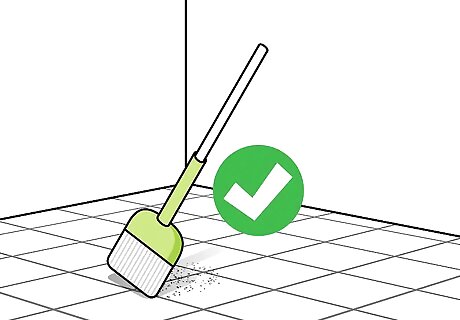 Sweep with a soft broom every day. Dirt and crumbs can build up and potentially scratch your tile, so make sure you sweep it up every day. Use a soft bristle broom and a dustpan with a rubber edge.