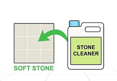 Use a stone cleaner on soft stone. Marble and limestone can scratch easily, so make sure you mop them weekly with a stone tile cleaner. Strong cleaner will damage the surface of soft stone. Purchase a specially formulated stone tile cleaner at your local home store, or ask your tile dealer for a good recommendation.