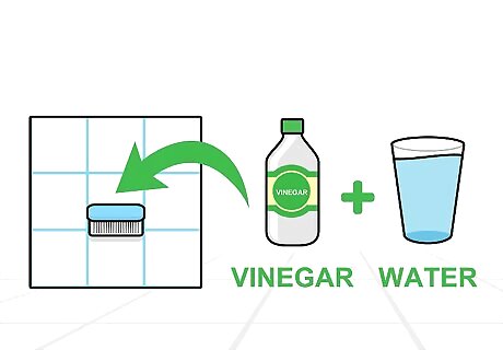Disinfect colored grout with a vinegar and water solution. Mix a cleaning solution of one part water to one part white vinegar to clean colored grout. Dip a scrub brush in the cleaner, scrub for about 30 seconds and rinse all vinegar off your stone with a water dampened sponge. Repeat with vinegar solution and water, until your grout is clean as a whistle. Dry the area with a clean, soft cloth.