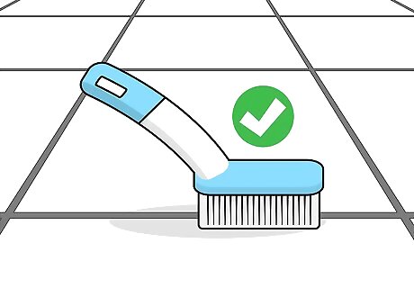 Scrub grout with a soft brush. Use a soft scrub brush to get to spaces between tiles. Use a stone cleaner on soft stone and try an all-purpose cleaner on granite and slate. Dip a small to medium-sized brush in your cleaner of choice and scrub grout vigorously. Wipe cleaner off with a water-dampened sponge.