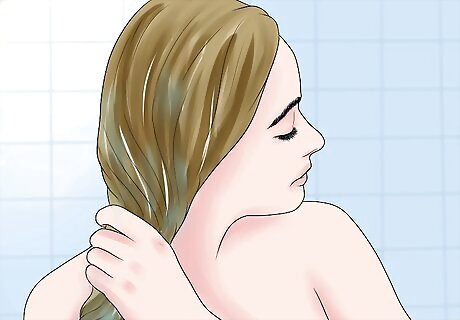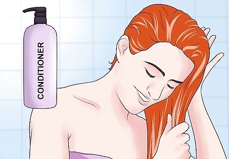 Condition your hair to provide moisture and detangle it. Conditioner works on a molecular level by binding the dead cells of the cuticles together, at which point they are lying more closely and look less ragged. It's important to use conditioner since shampoo strips the hair. Some recommend conditioning each time you shampoo, but conditioning too much could make your hair listless and slick.