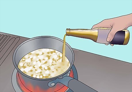 Flatten or boil your beer. Pour the beer into a container and let it sit, or put it in a pot and boil it. Either method not only gets rid alcohol that can strip hair of its natural oils, but it also removes carbonation that, when combined with water, can create a high mineral content environment - also known as "hard water" - that hinders the effects of shampoo. The type of beer you use is based on personal preference, so try experimenting with different brews to see which works best for your hair. Try an organic beer to narrow down chemicals and other unknowns put into typical highly processed, commercial beers. Cut down on the beer smell by adding some apple cider vinegar, jojoba oil, some essential oils, or even a small amount of common conditioner.