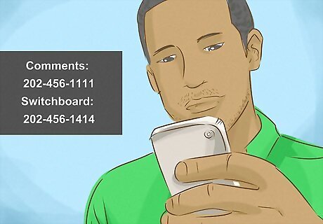Locate the appropriate contact information. This can be found online, by searching sites such as USA.gov and Congress.org, in your local printed directories and in government buildings such as post offices and libraries.
