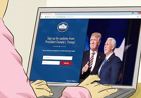 Use social networking to contact government officials. Follow officials on Twitter, if they have an account. You can send a tweet or a direct message. Visit Facebook pages to share opinions and offer support.
