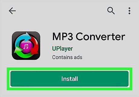 Download MP3 Converter from the Google Play Store Android Google Play. This app is developed by UPlayer and can be used on any Android device. MP3 Converter has lots of downloads, is the most popular in Google searches, and has good reviews. You can tap the search bar at the top of the Google Play Store to search for "MP3 Converter."