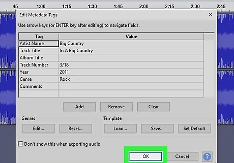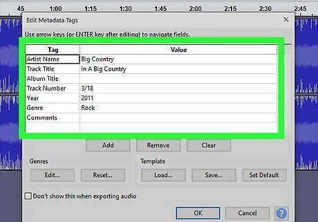 Edit the metadata tags. You'll see a window where you can change the song title, artist name, album title, track number, year, genre, and comments of the track before continuing.