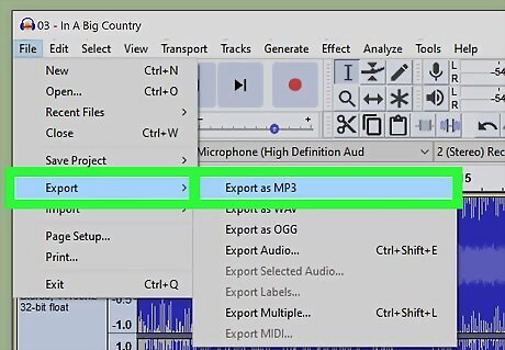 Export it as an MP3. Hover over File again until the menu drops down, hover over Export, and click Export as MP3. When your file browser pops-up, you can change the converted file name and/or location before clicking Save.