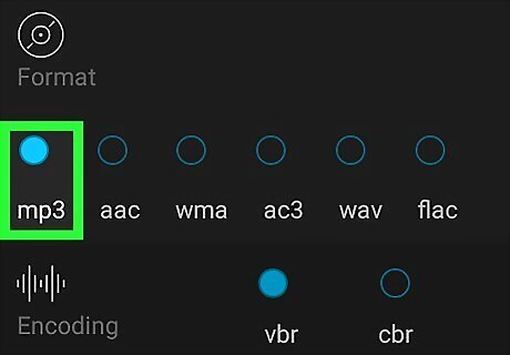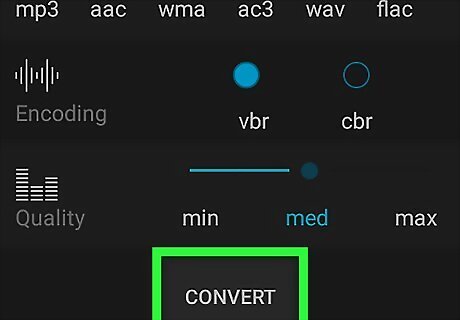 Tap the file you want to convert. The default tab selected, the headphones icon tab, should show all the audio files locally stored on your phone. If you want to convert a video file (e.g., MP4 format) to audio, tap the video camera tab. If you have a file in cloud storage, you'll need to download it to your phone to be able to see it in the app.