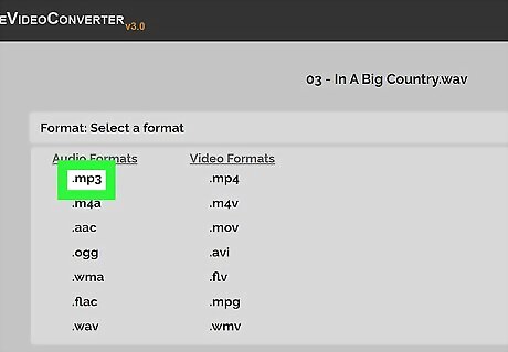 Click or tap .mp3. You'll find this under the "Audio Formats" header.